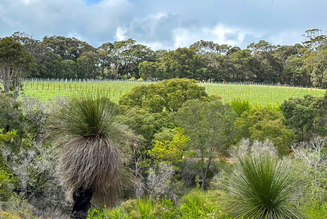The Corymbia vineyard, bordered by natural bushland and the Calgardup Brook.