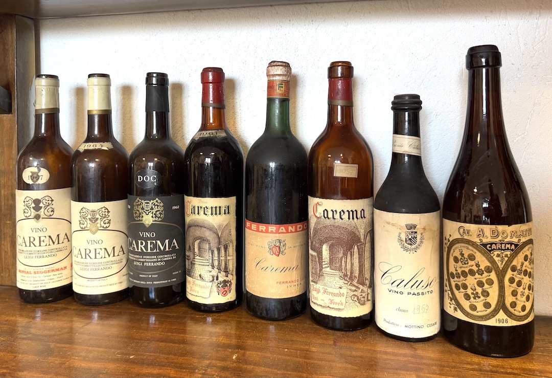A collection of older, long-emptied bottles that chronicle Ferrando’s rich history.