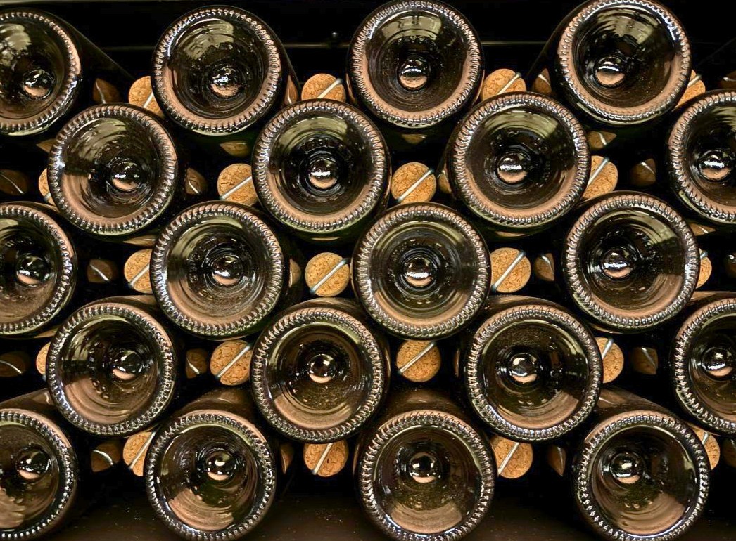 In Penedès, “rima” refers to the stacking of bottles on their lees to promote yeast autolysis. Some producers employ cork closures for extended aging, as pictured here, as a slight exchange of oxygen can enhance aromatic complexity.