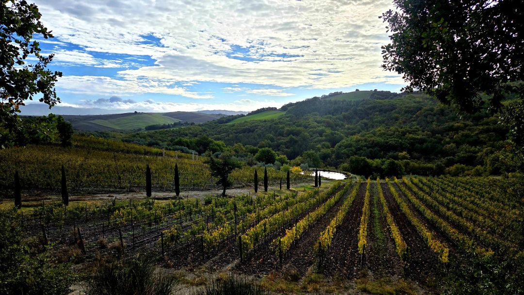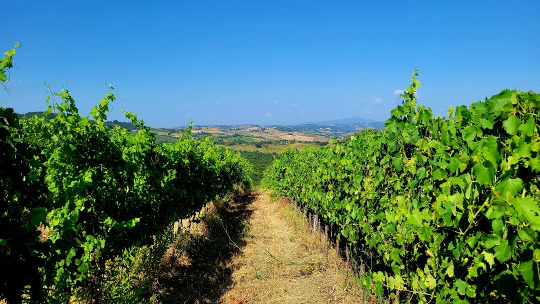 Vineyards in Montecucco, looking toward the Tuscan coast.