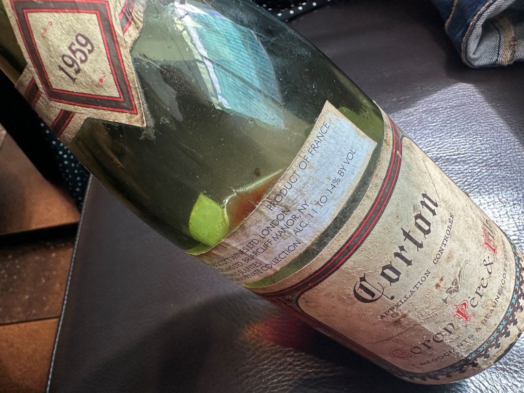 The 2014 Musigny Grand Cru from Louis Jadot offers lively red fruit laced with potpourri and light pressed rose petal scents. It does not deliver the grandeur of a top Musigny, but it conveys modest class and sophistication. This was almost Barolo-like on the palate, not powerful, but refined, with understated mineralité and a cohesive yet understated finish. Perhaps the vintage just limited its capabilities? Even so, at the end of the day, the 2014 remains a lovely wine. The “surprise package” was a bottle 1959 Corton Grand Cru from Coron Père & Fils. This négociant has a good reputation, one confirmed by this exquisite showing. Pure red cherry and bergamot scents unfurl on the nose, more Côte de Nuits in style than Côte de Beaune. The aromatics are entrancing. The palate has a satin texture, perfectly balanced and revelling in the precocity that the ’59 vintage bestowed its Pinot Noirs. Time has tempered that exuberance to render a beguiling Corton that I could drink ‘til the cows come home. The Corton outflanked the 1959 Chambertin, also from Coron Père & Fils. The passing years have denuded the Chambertin some fruit intensity and it feels a bit hollow by comparison. Likewise, whilst the palate is balanced with a light grip, it just misses the power and depth you’d expect. Nonetheless, this was not a bad showing given the wine’s antiquity, and a couple of attendees preferred this to the Corton.